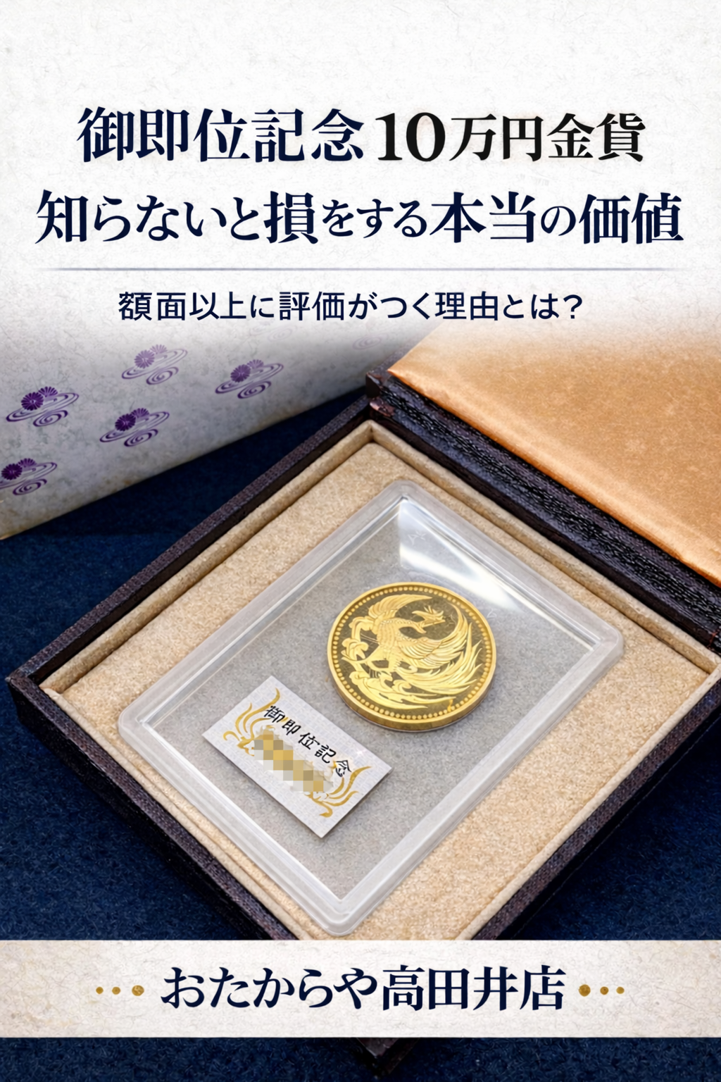天皇陛下の御即位を記念して発行された「10万円金貨(御即位記念金貨)」は、日本を代表する記念金貨のひとつです。